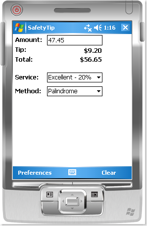 - Allows you to select the tip calculation method (e.g. standard, checksum, or palindrome).